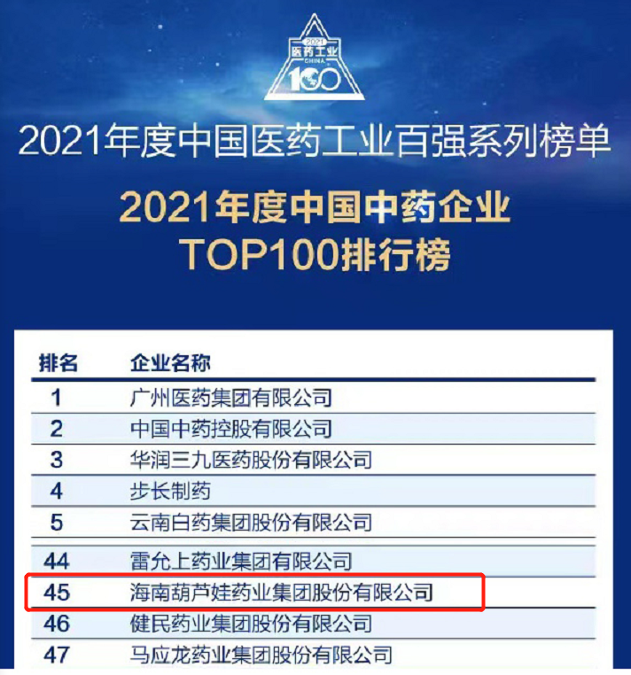万众瞩目的2021年度中国医药工业百强系列榜单在会上盛大发布,征途国际药业集团百尺竿头更进一步,位列中国中药企业TOP100排行榜第45位,连续第三年入围中国中药企业TOP100百强榜。