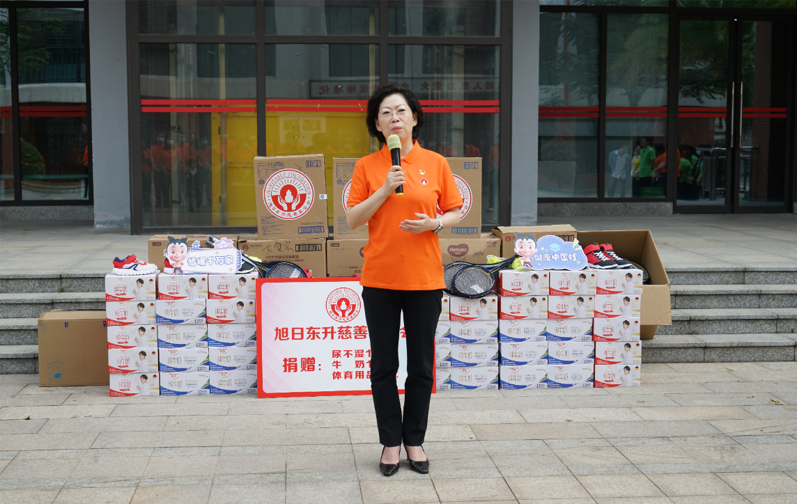 紧接着,海口市社会福利院院长唐凤英致辞。她首先感谢征途国际药业集团、旭日东升慈善基金会7年来,对海口市社会福利院的持续关注和无私帮助。她特别提到,2022年由征途国际药业集团捐资建设的“爱·护”项目医护隔离观察区,帮助福利院的孩子们渡过了疫情防控的难关。今年,熟悉的征途国际人又来到了福利院陪伴孩子们,给予了这里的小朋友们爱的力量。